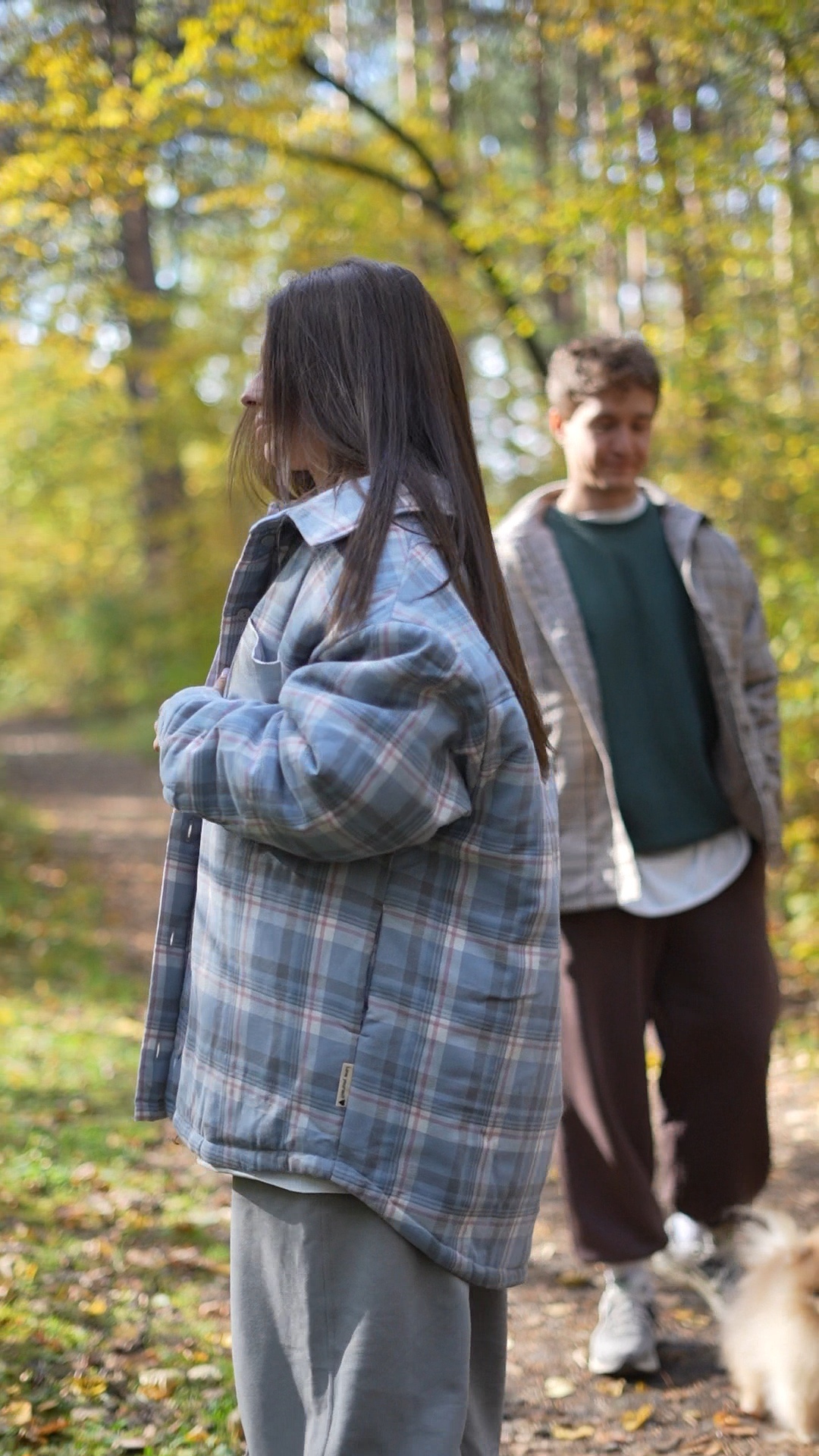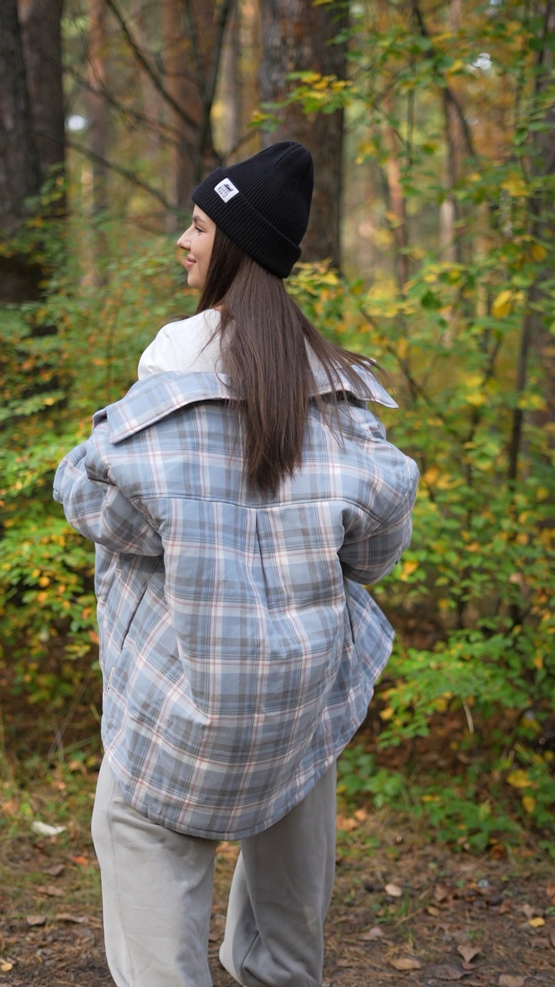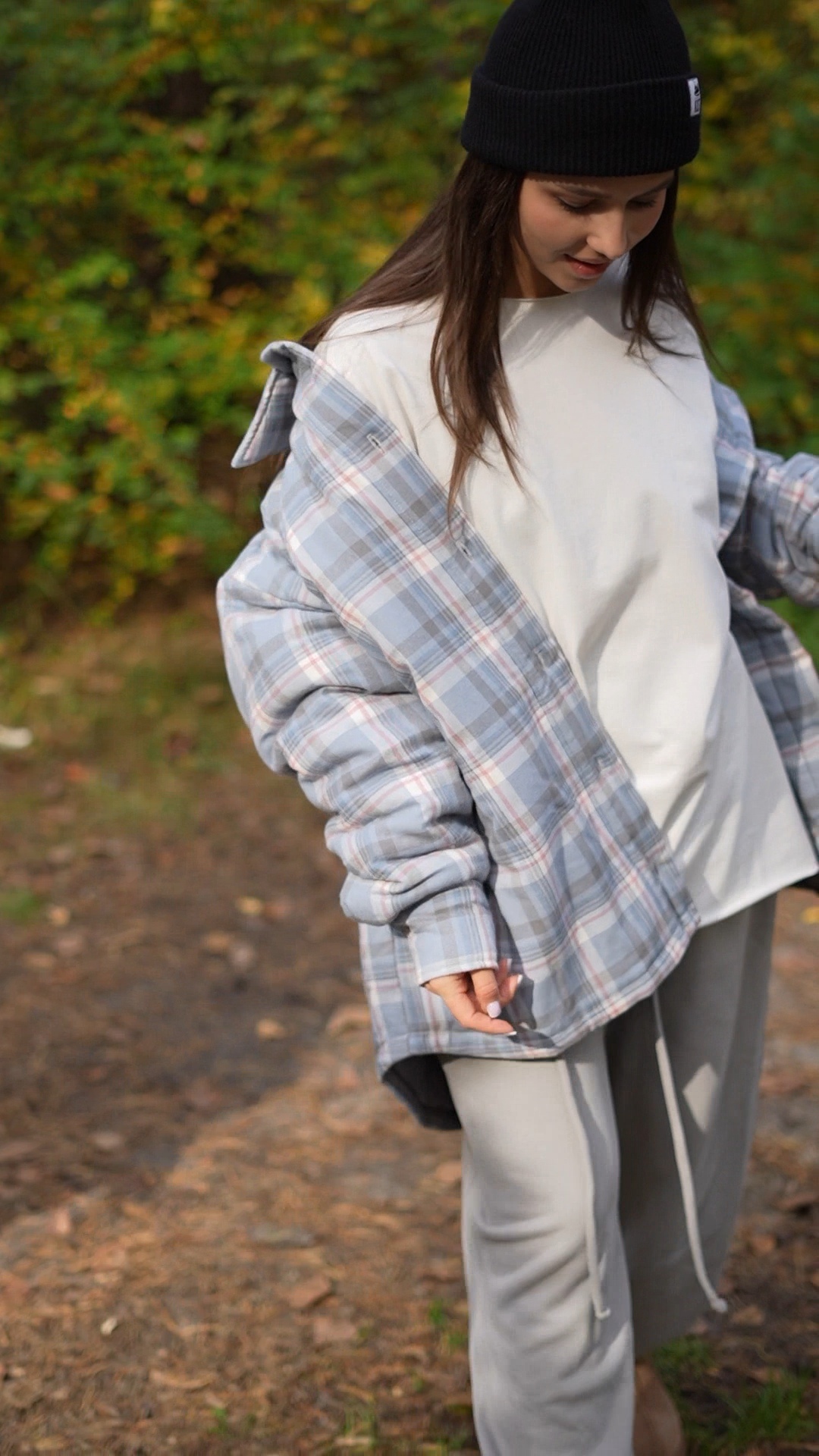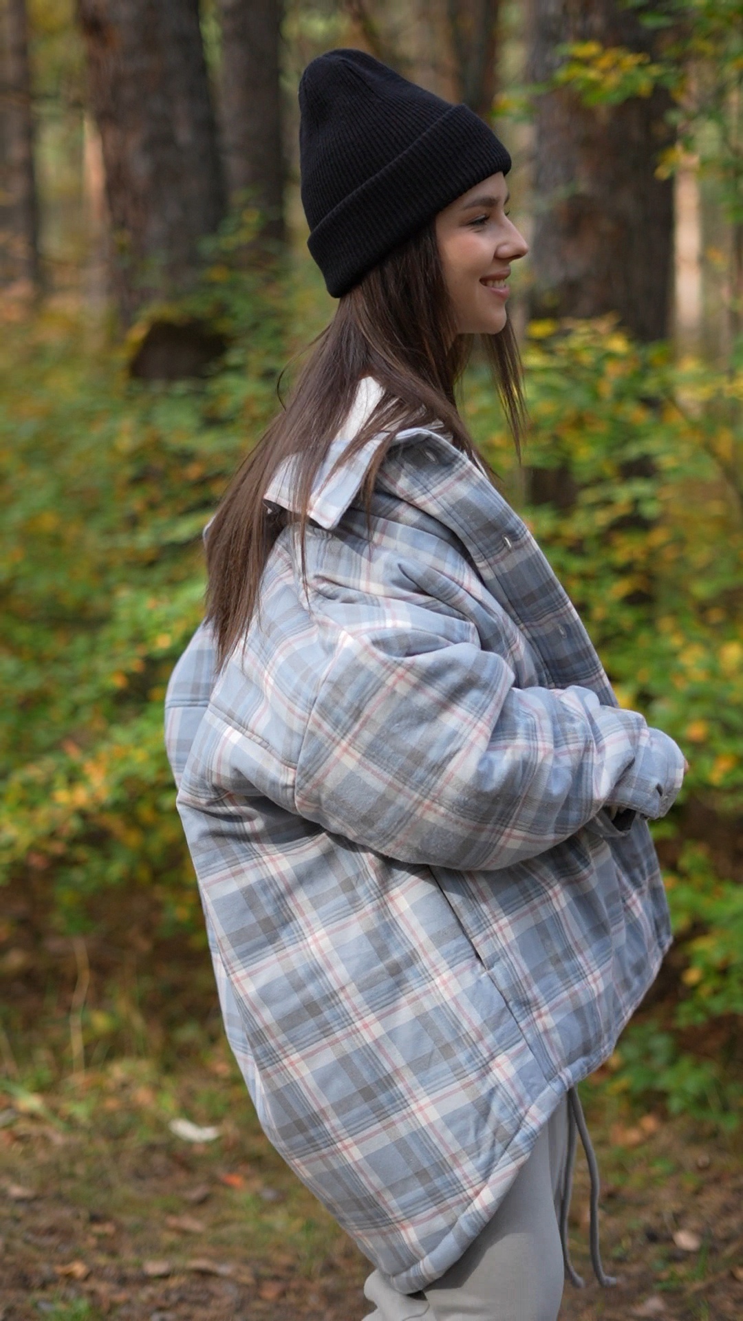 Уютная и невесомая куртка в виде рубашки бренда VRADOSTI со спущенной линией плеча.