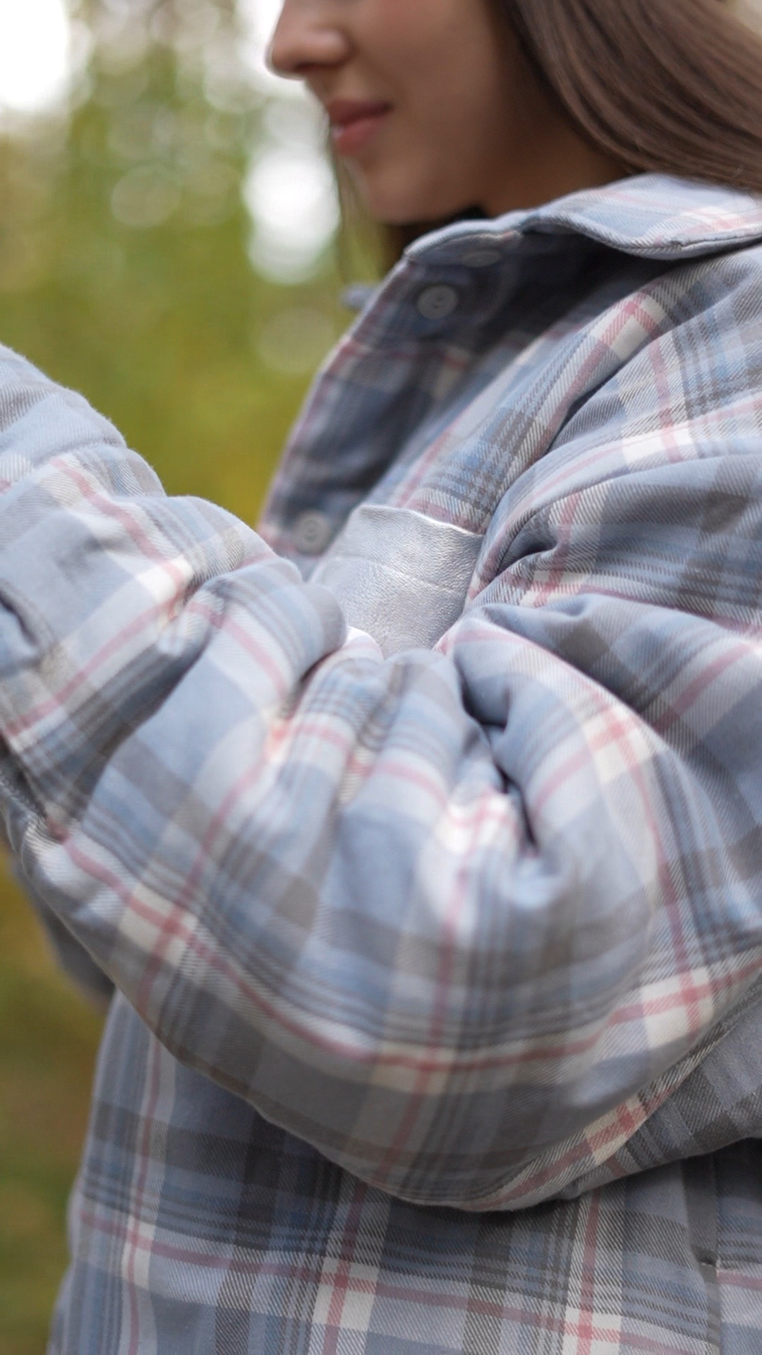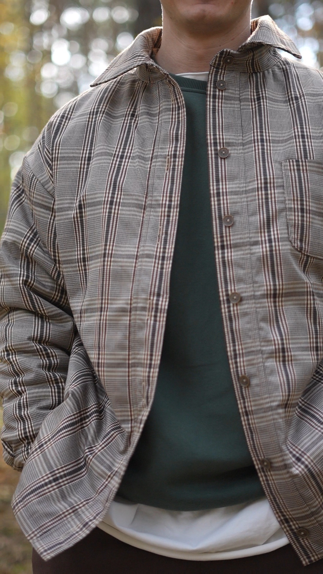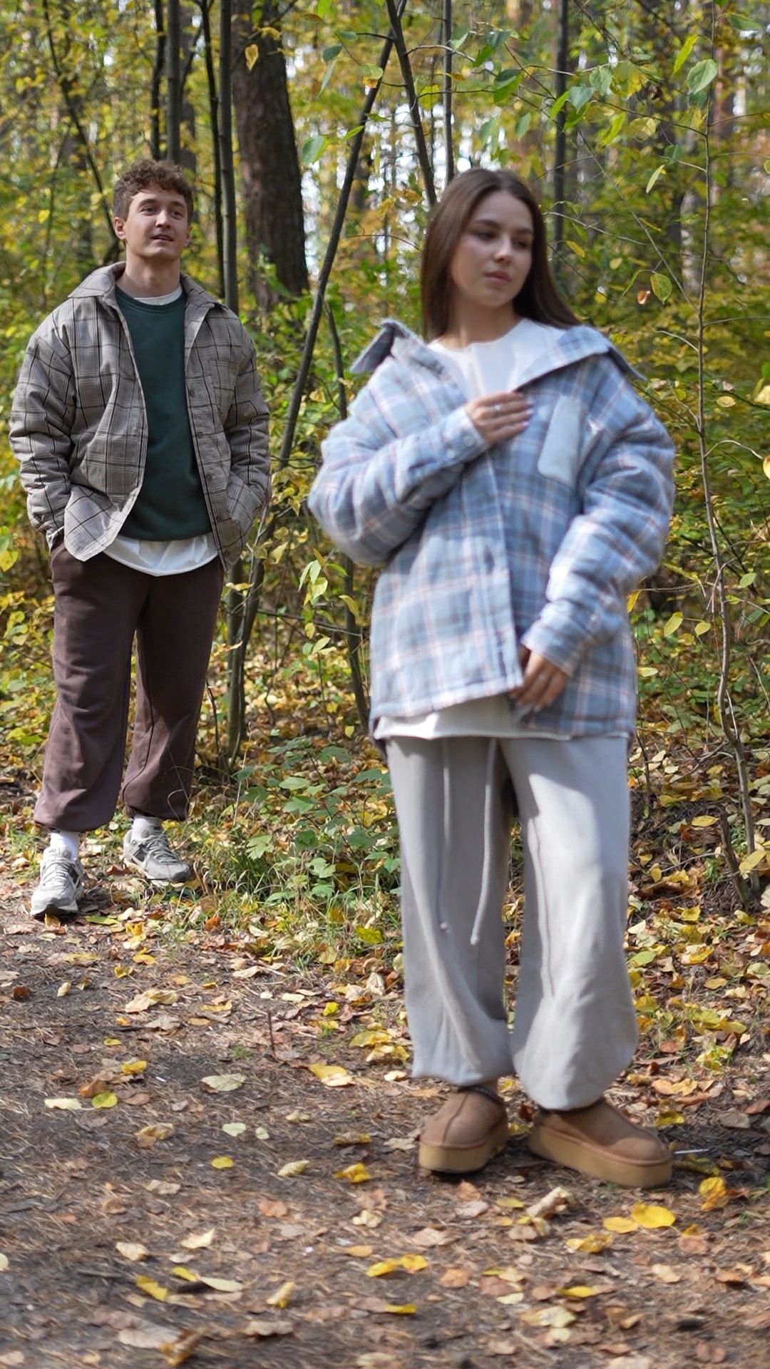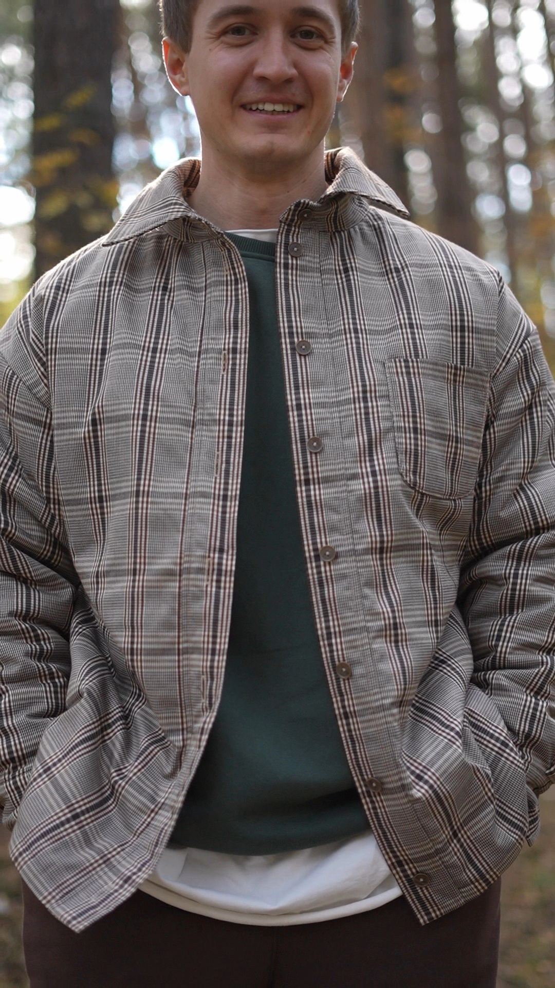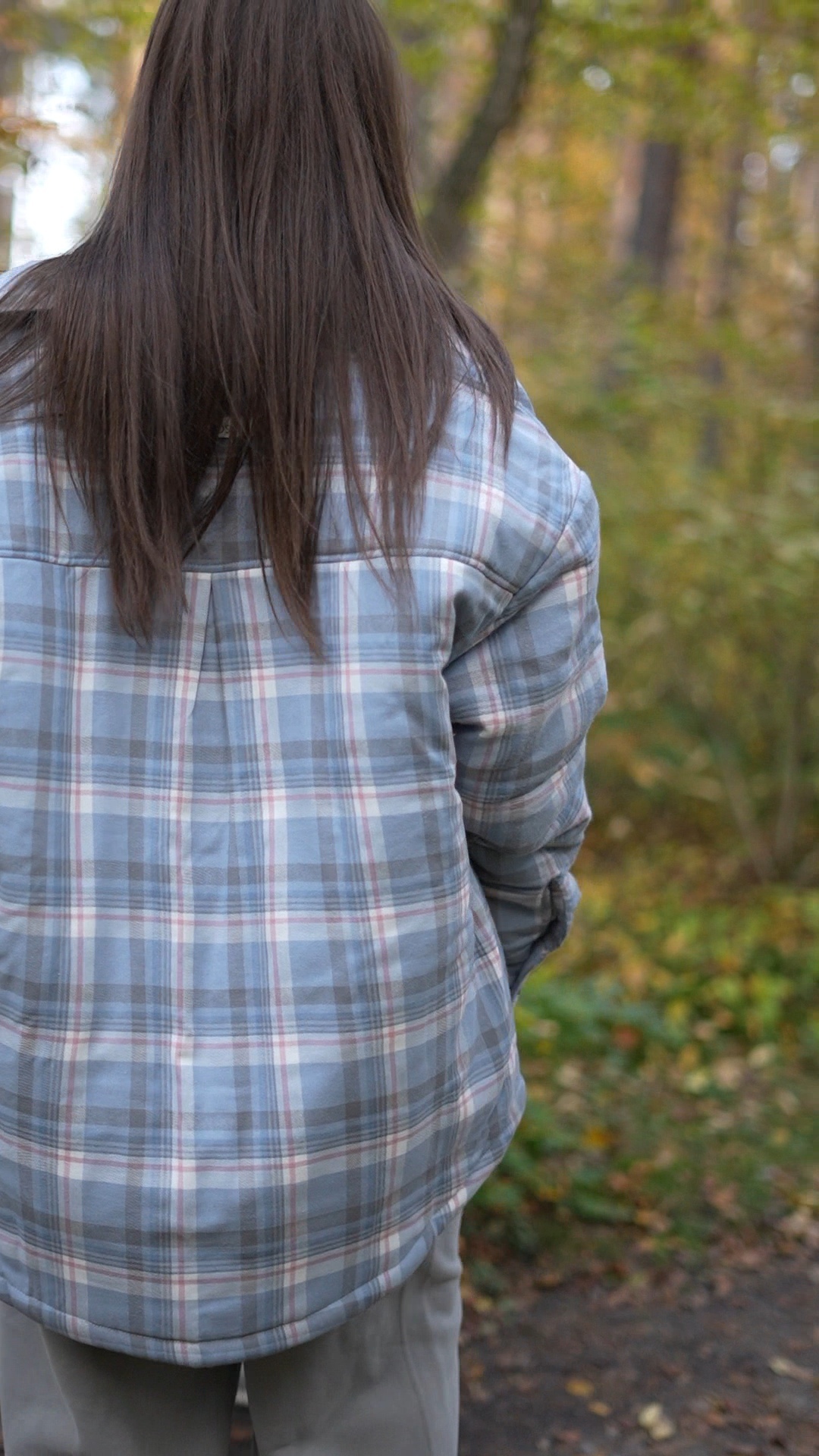 Уютная и невесомая куртка в виде рубашки бренда VRADOSTI со спущенной линией плеча.