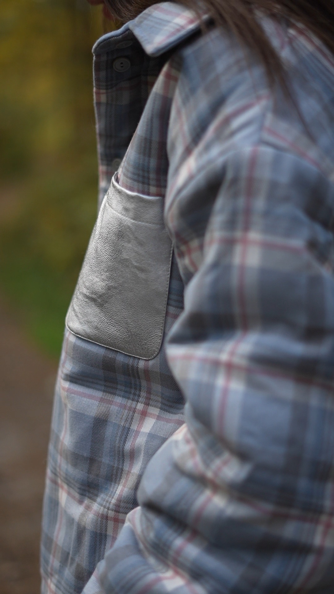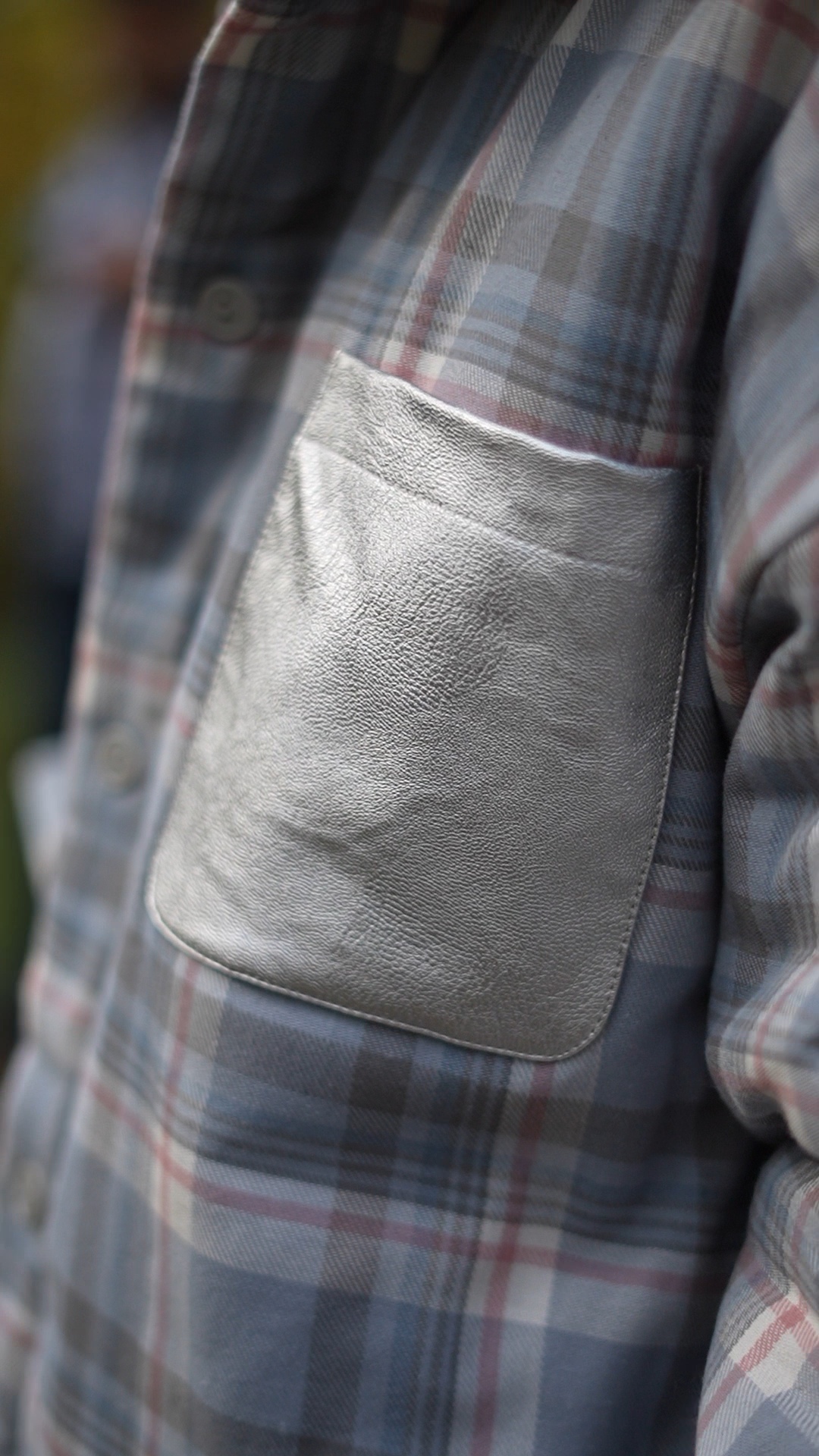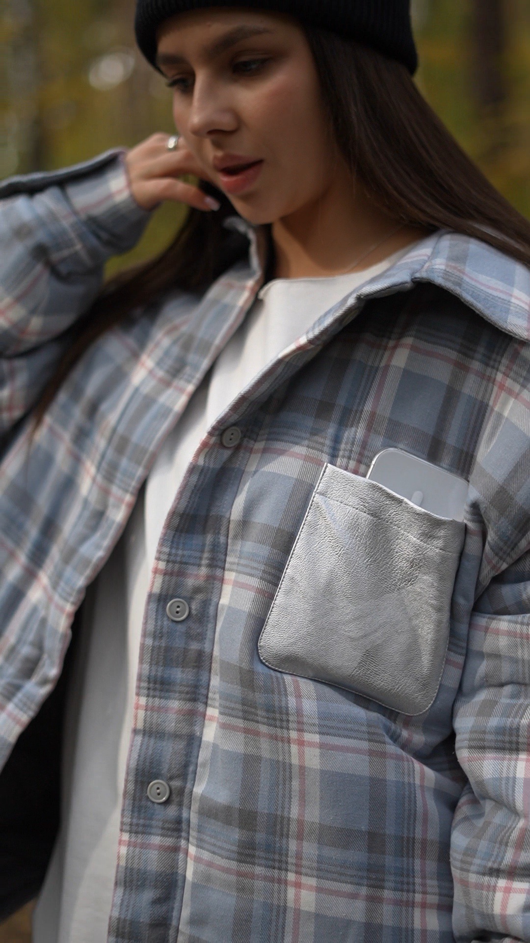 Куртка дополнена - двумя боковыми карманами и одним карманом нагрудным. Нагрудный карман из эко-кожи контрастного цвета