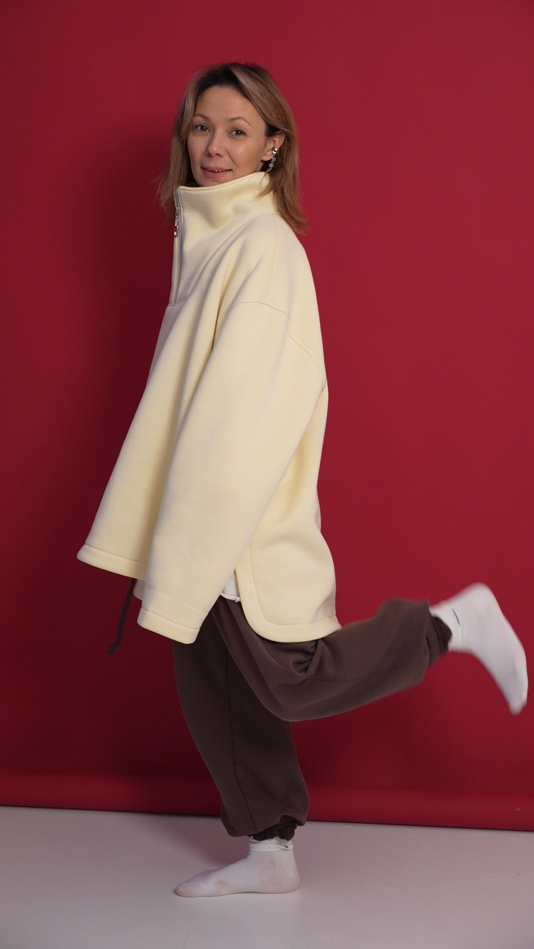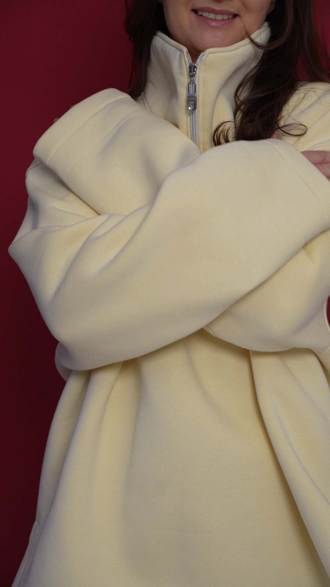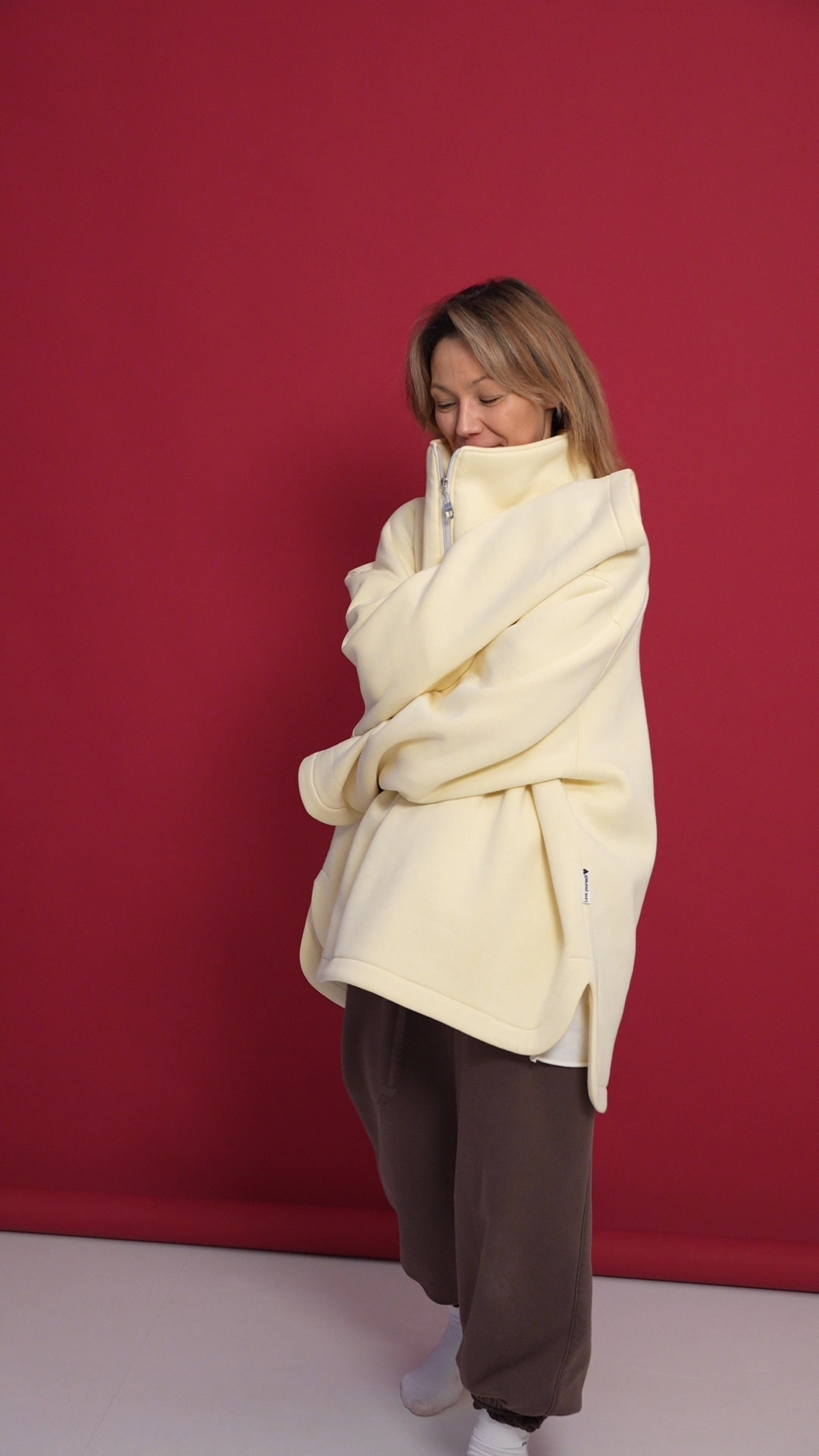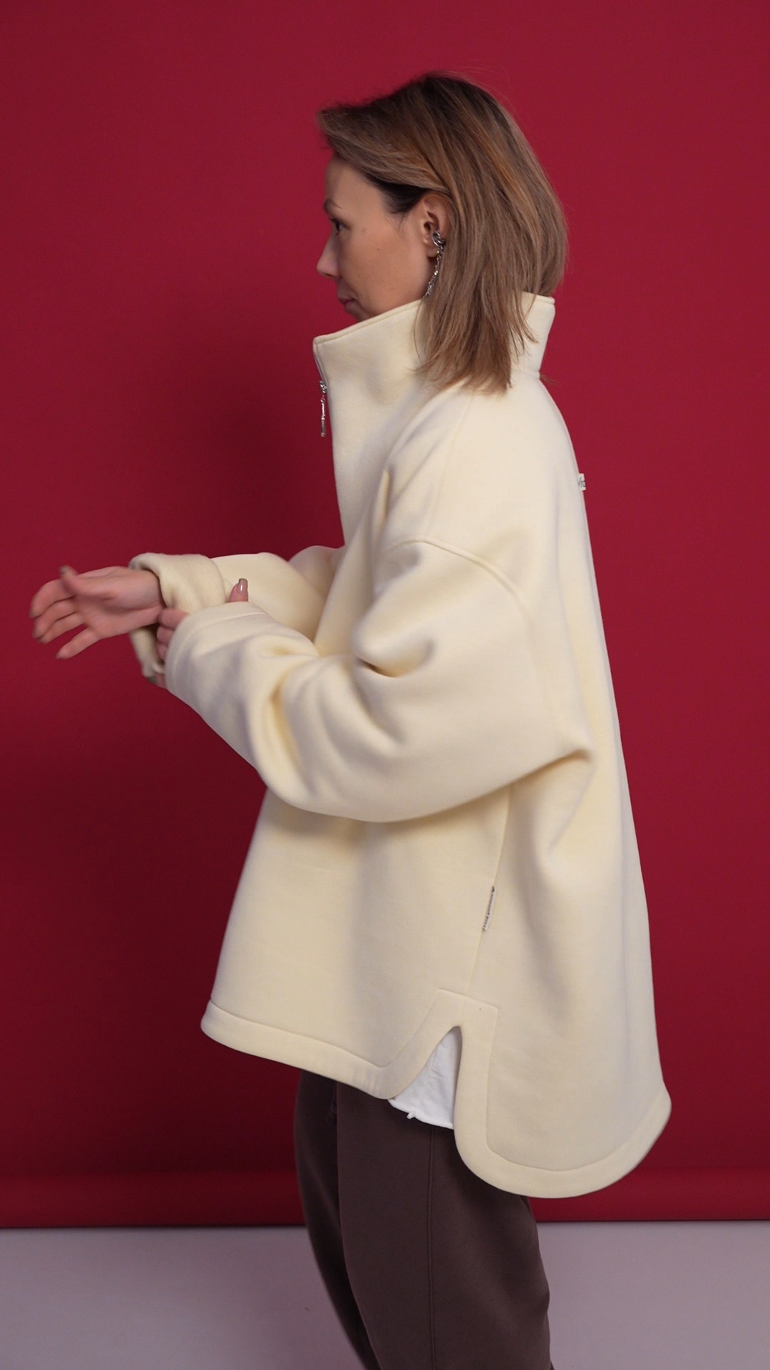 Выполнен из футера с велюр эффектом с начесом . Горловина застегивается на молнию, сзади нашивочка с логотипом VRADOSTI